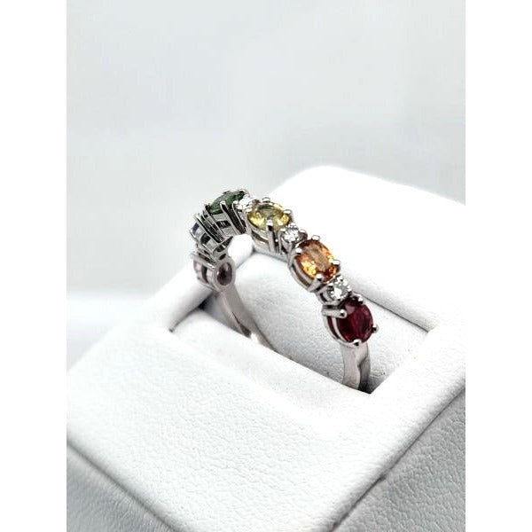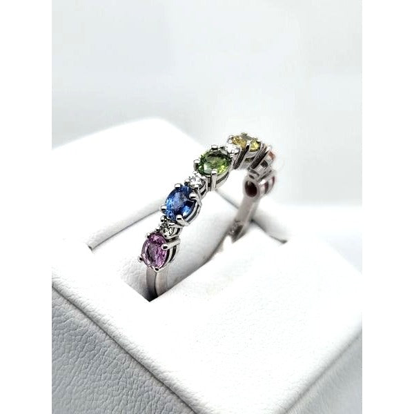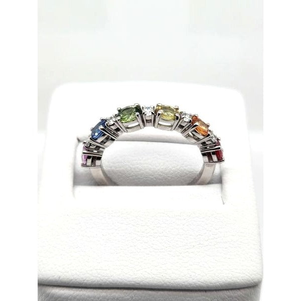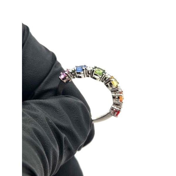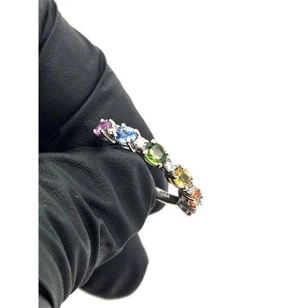 Crafted in elegant 14kt white gold, the ring offers a pristine and luxurious setting for the gemstones. The white gold enhances the sapphires' color and adds a touch of modern elegance to the design.