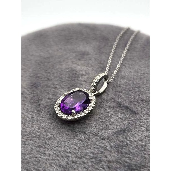 Delicate diamond accents grace the pendant, adding a touch of sparkle and sophistication. The diamonds are meticulously set to enhance the overall beauty of the pendant and provide a stunning contrast to the amethyst.