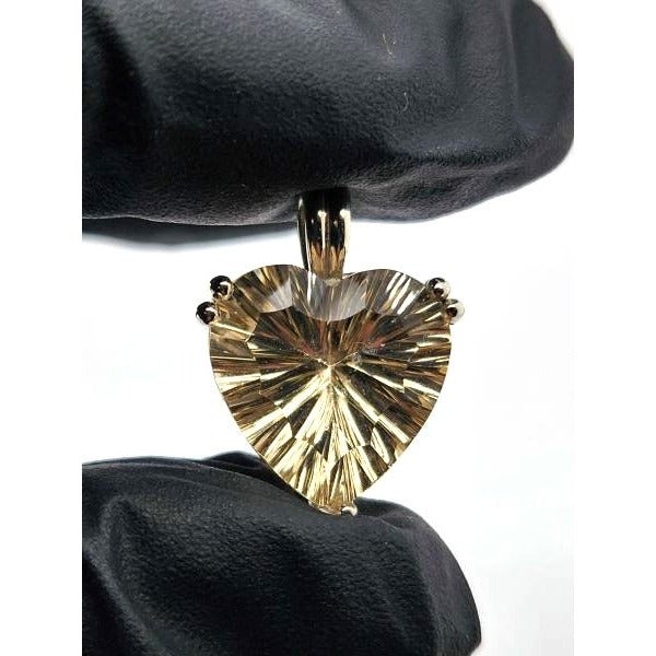 Elevate your style with this captivating 14kt white gold pendant, featuring a heart-shaped Labradorite gemstone weighing an impressive 9 carats. This pendant is a true work of art, with a laser-cut design, and it weighs approximately 3.5 pennyweights (dwt).