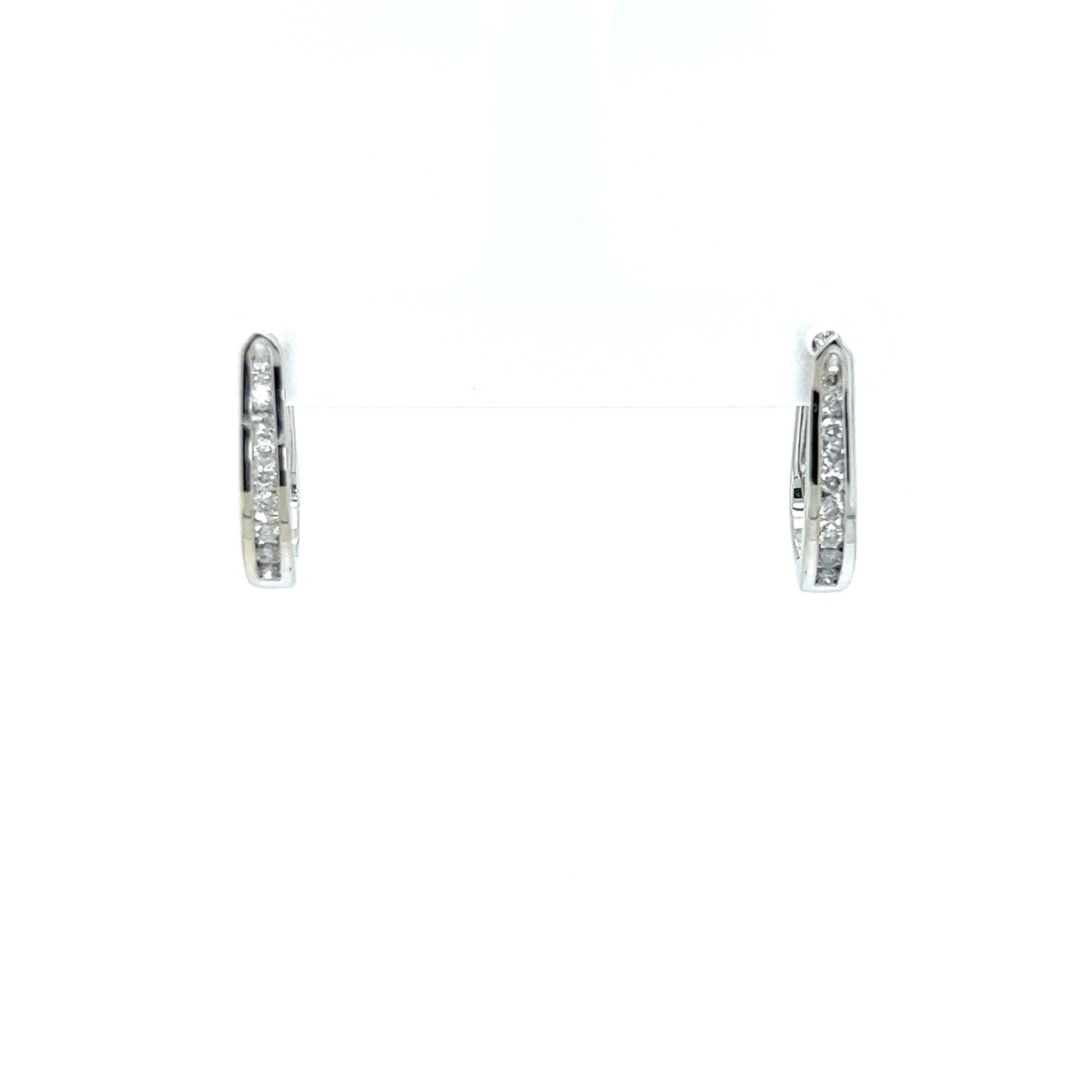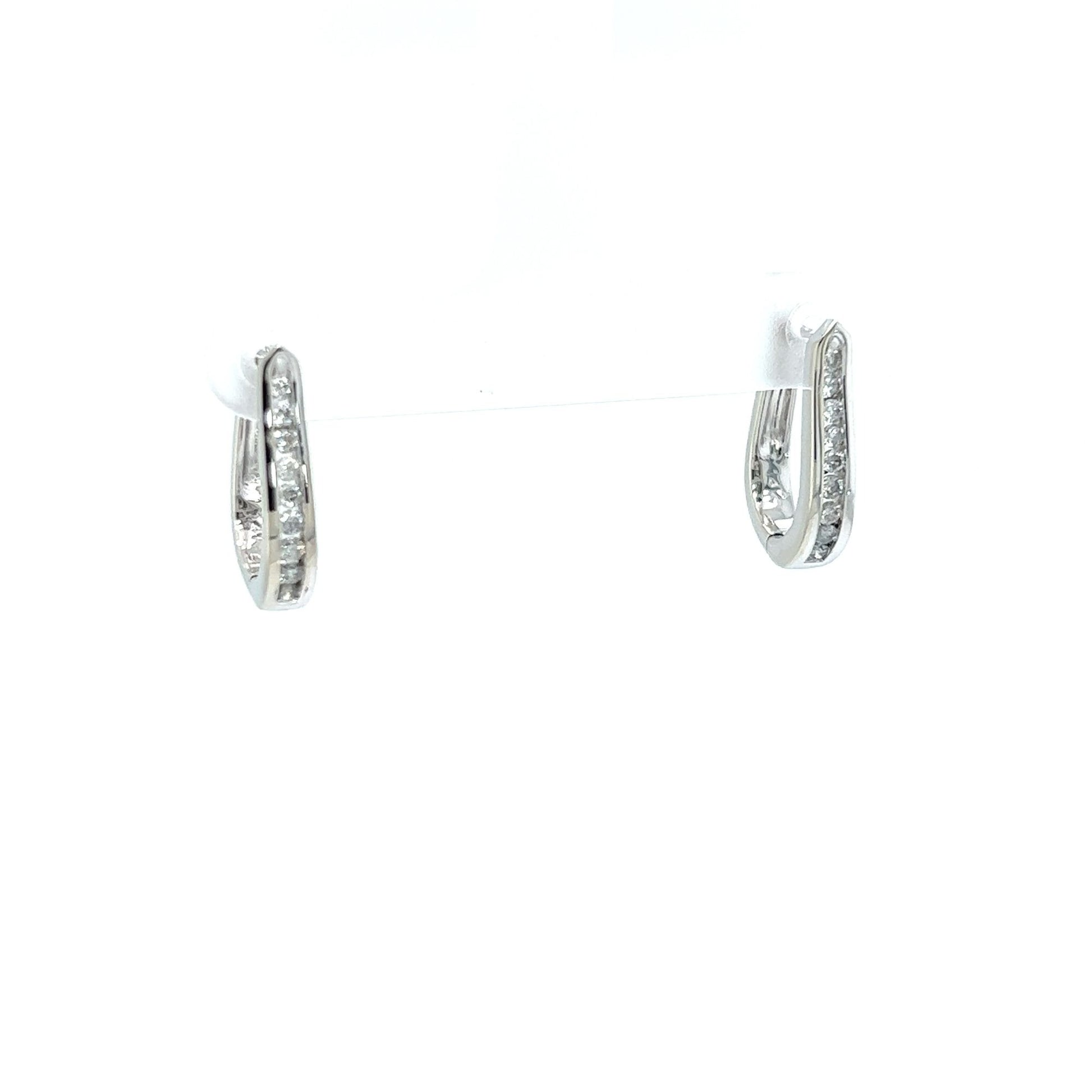 These stunning huggie earrings feature natural diamonds set in 14kt white gold. The earrings have a total weight of approximately .5 carats of diamonds, with an H color and Si1 clarity. The diamonds are carefully set to create a beautiful and eye-catching sparkle that catches the light from every angle.