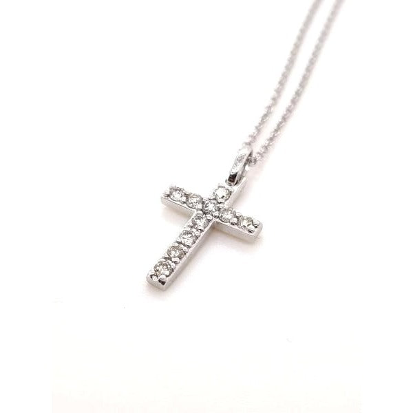 Crafted in brilliant 14kt white gold, the cross provides a pristine and luminous setting for the diamonds. The white gold enhances the diamonds' brilliance and adds a touch of modern sophistication to the design.