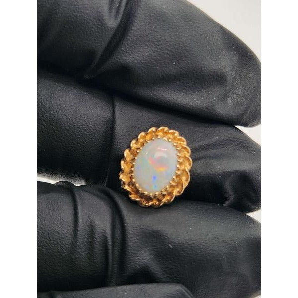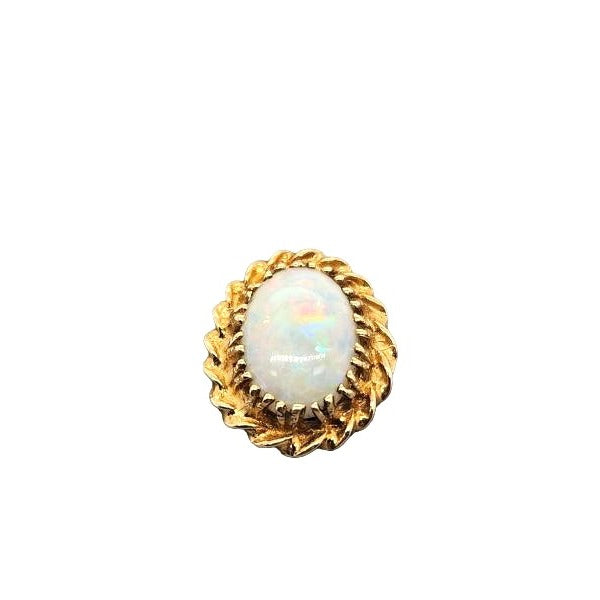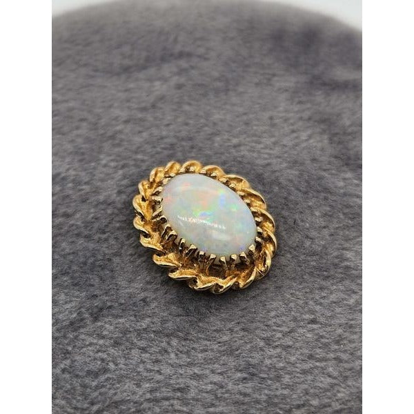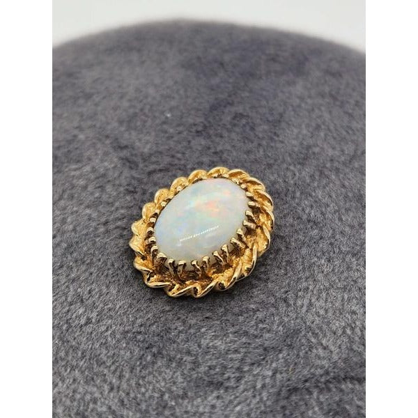 Elevate your style with this captivating 14kt yellow gold twisted rope opal pendant, featuring a 10.5x8 millimeter oval opal gemstone. This pendant is beautifully crafted and weighs approximately 0.9 pennyweights (dwt).