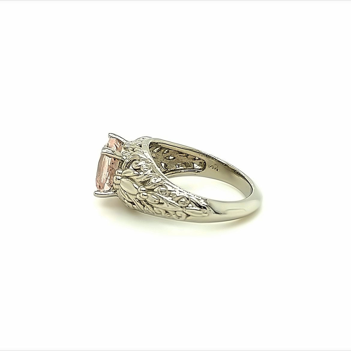 Etched 14kt White Gold Band w/ Cushion Cut Morganite Ring