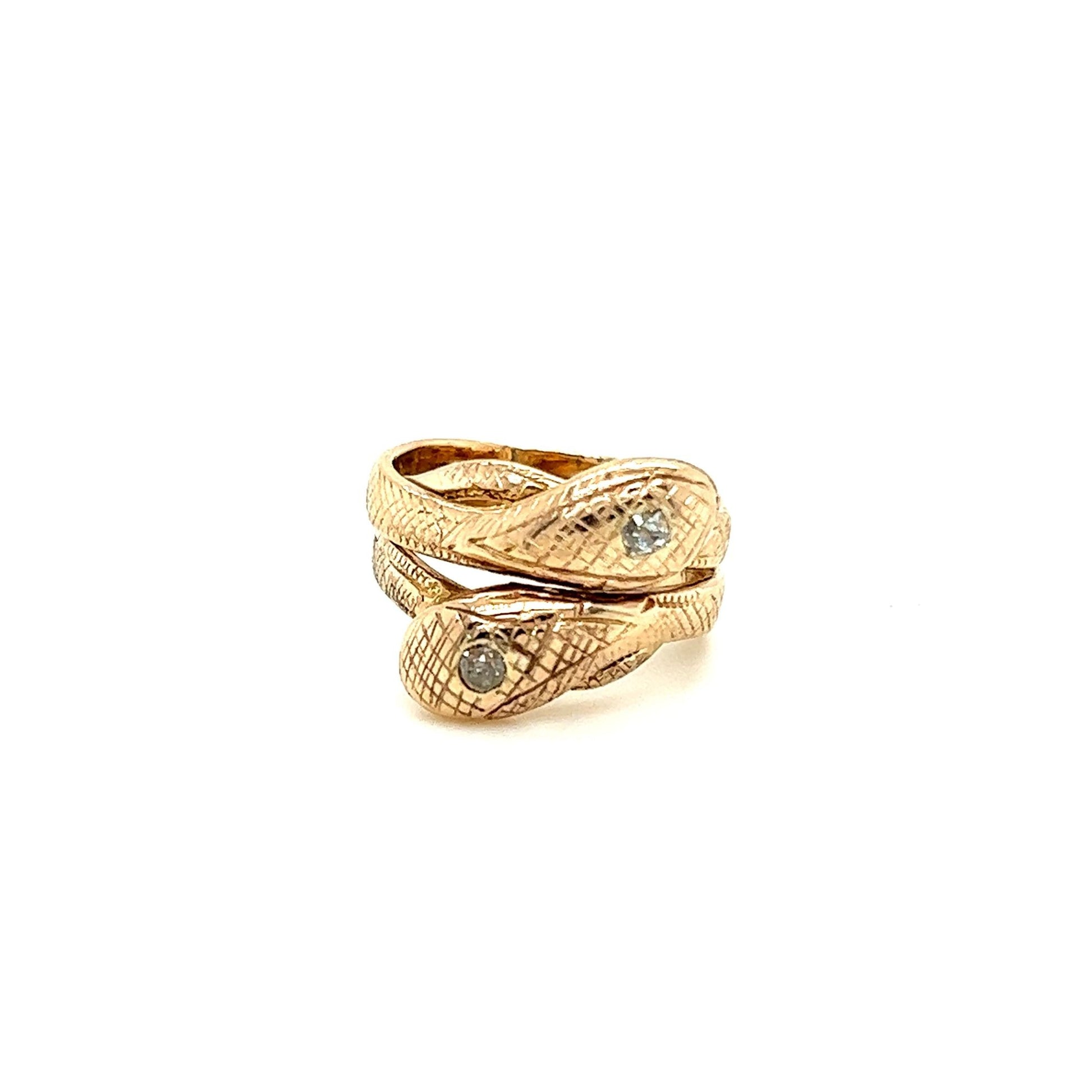 Vintage 14kt Yellow Gold Snake w/ Two Diamond Ring